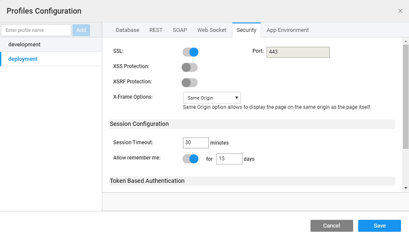For Development Profile SSL Encryption is set by default. You can choose to change the setting for Deployment Profile.