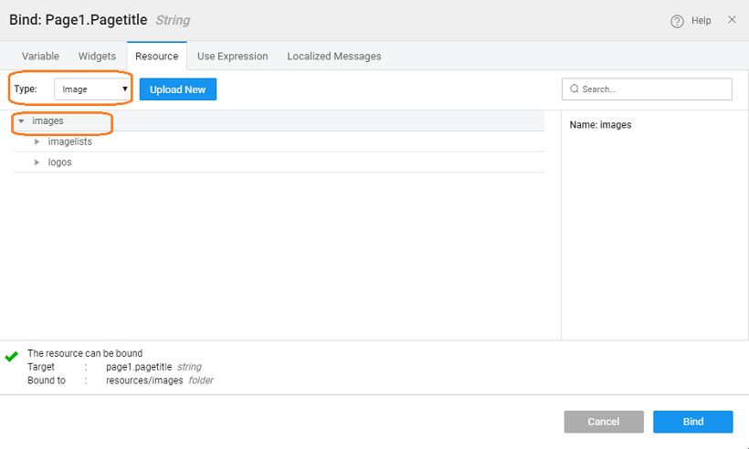 • In the case of media resources like images, audio files or video files, you can bind them to the appropriate widgets.