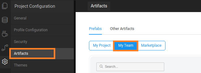 - In Prefab Artifacts, go to the Approved Artifacts where we can select the Artifact to share.
