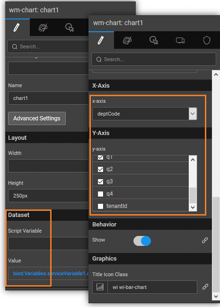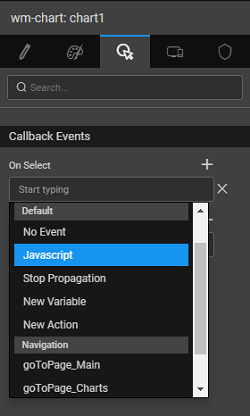 - These data points can be captured and used to bind to a widget for further display or computational purposes from the selected item of the chart widget
