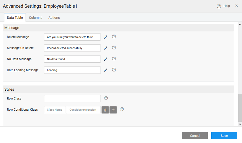 Similar to columns styling, styles can be applied to rows in the Data Table. Conditional classes can also be applied based upon the data value within the rows.