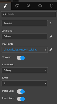 - Drag and drop the Googlemaps prefab onto the canvas on any of the pages in your application.