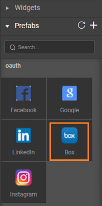 - Drag and drop the Box OAuth Prefab on the canvas of the desired page of the application.