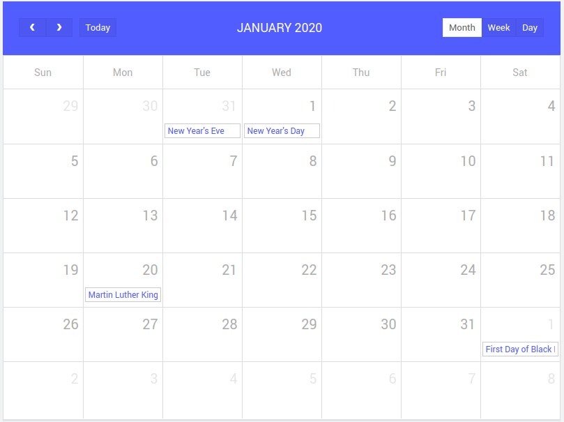 googleCalendarId: 'en.usa#holiday@group.v.calendar.google.com' // Your google calendar Id.