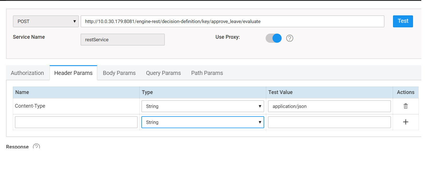 Import the Camunda REST Web Service from WaveMaker’s Web Service section. Note: Please make sure to add Content-Type value as application/json in Header Params.