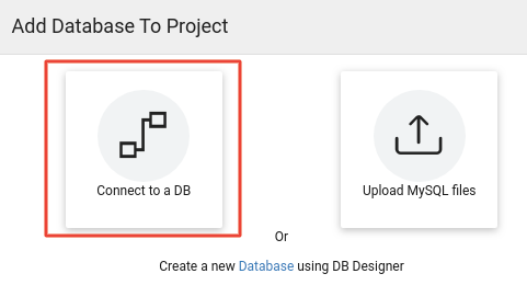 - Navigate to the Databases section and click on the plus icon to add the Database to the project. From the popup, choose Connect To a DB option.