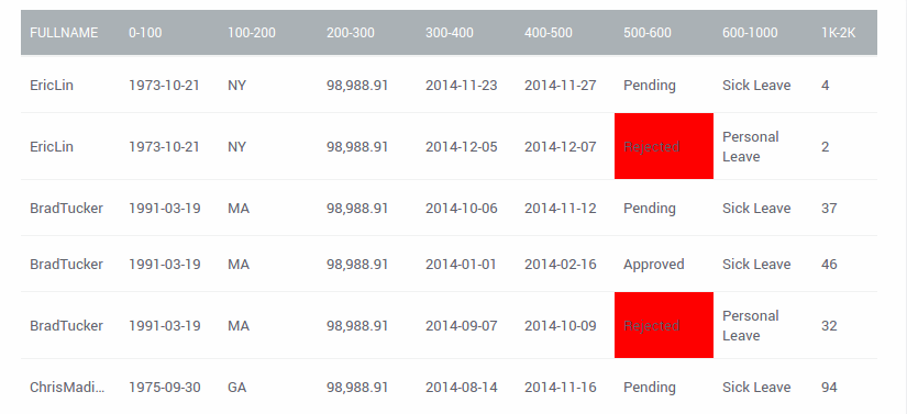 In the given example, if the cell value is Rejected then we are applying below styles.
