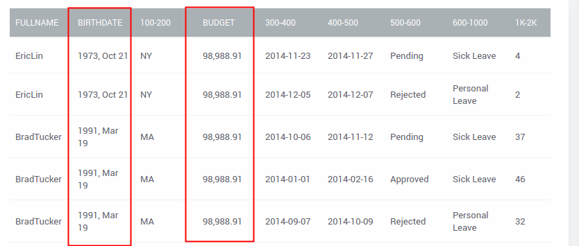 As the metadata will be dynamic for the dynamic datatable, the edit mode widgets will be text boxes by default. If we want to customise the widgets as date or number widgets etc., based on the data the below code should be added in onBeforedatarender event.