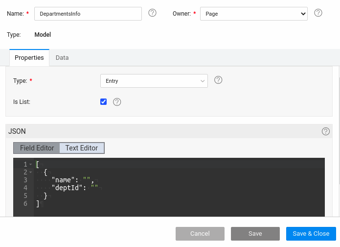 • Select the Department Datatable on the page.