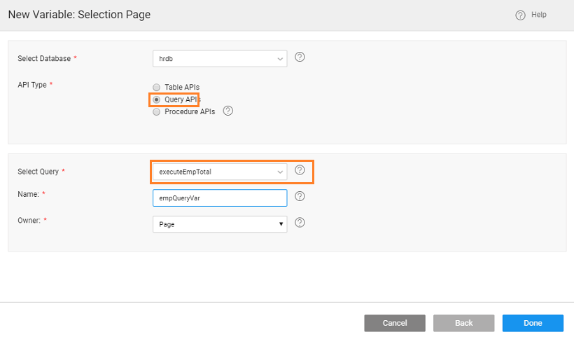 7. Create a Database API Variable for the Query service