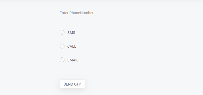 - Now preview the app, enter login credentials in Login page. Once authentication is successful, it will be redirected to OTPPage. Enter phoneNumber or email and select the channel and then click on Send OTP button. A dialog will be popped up to validate OTP. Once OTP is validated you will be redirected to user landing page.