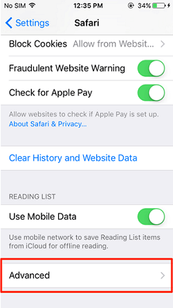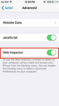 • Go to Advanced and check on ‘Show Develop Menu in menu bar’