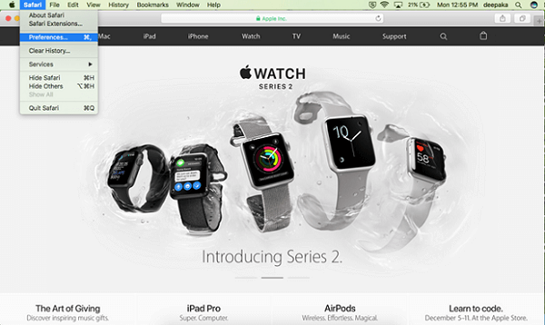• Open Safari in a MacBook, and click on ‘Develop’ menu.