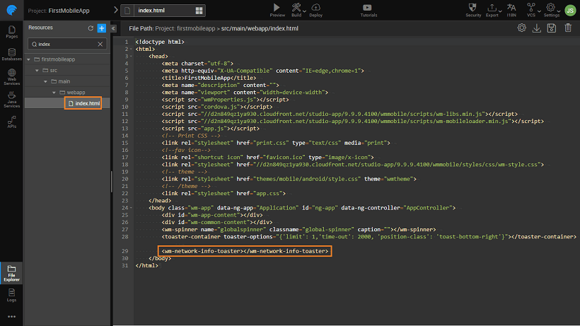 • You can choose not to use this offline-online switch functionality. In such cases, you can remove the tag from index.html.