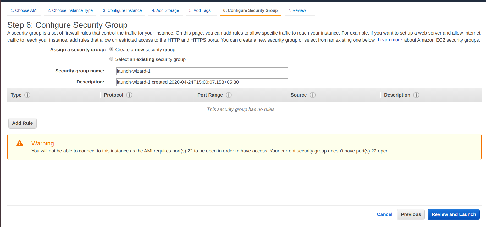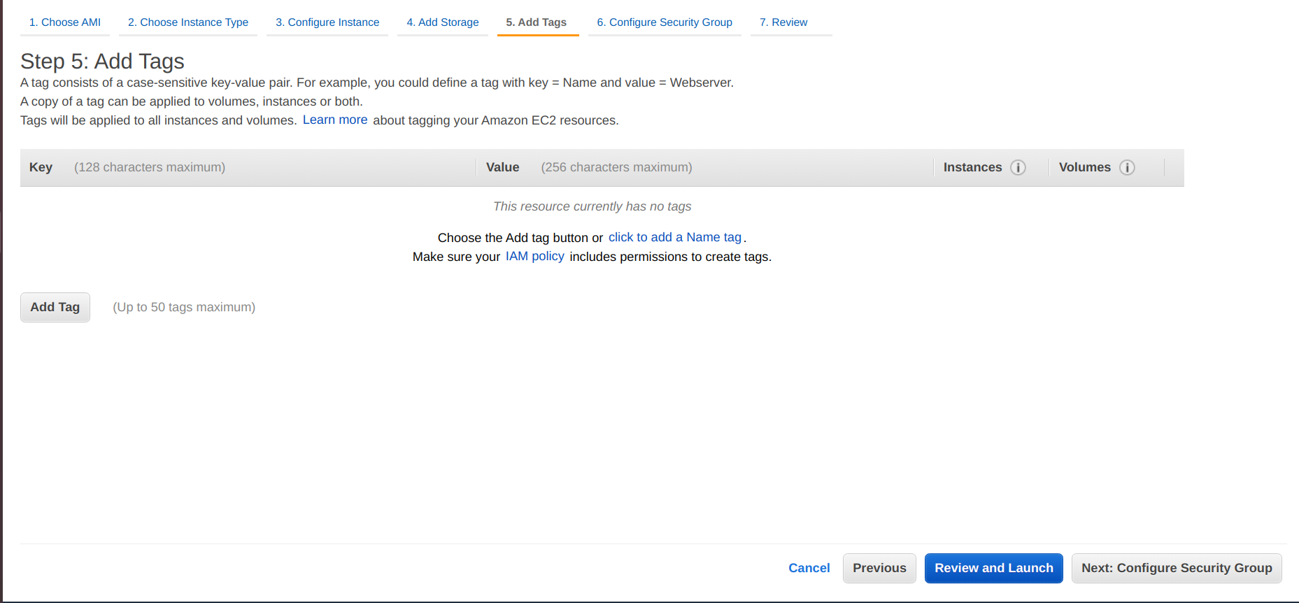 - If you want to add any tags, add tags to the instance.