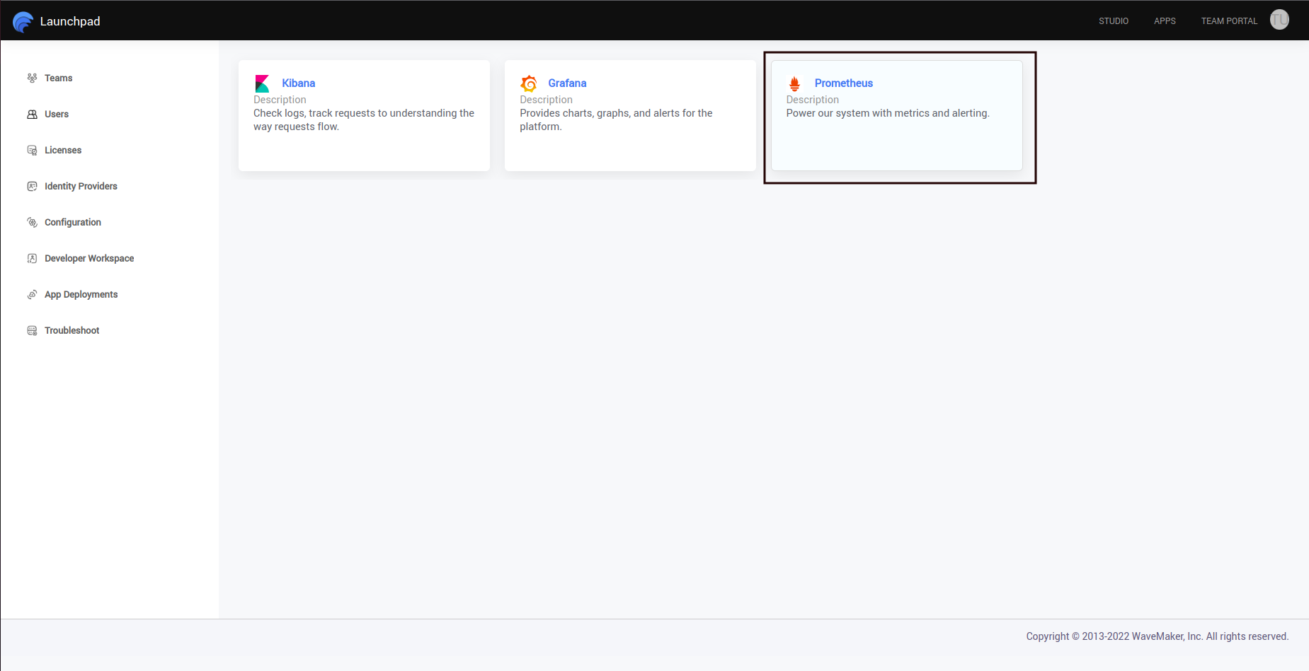 1) After the WaveMaker login, open the Launchpad and click the Troubleshoot located on the bottom left as shown below.